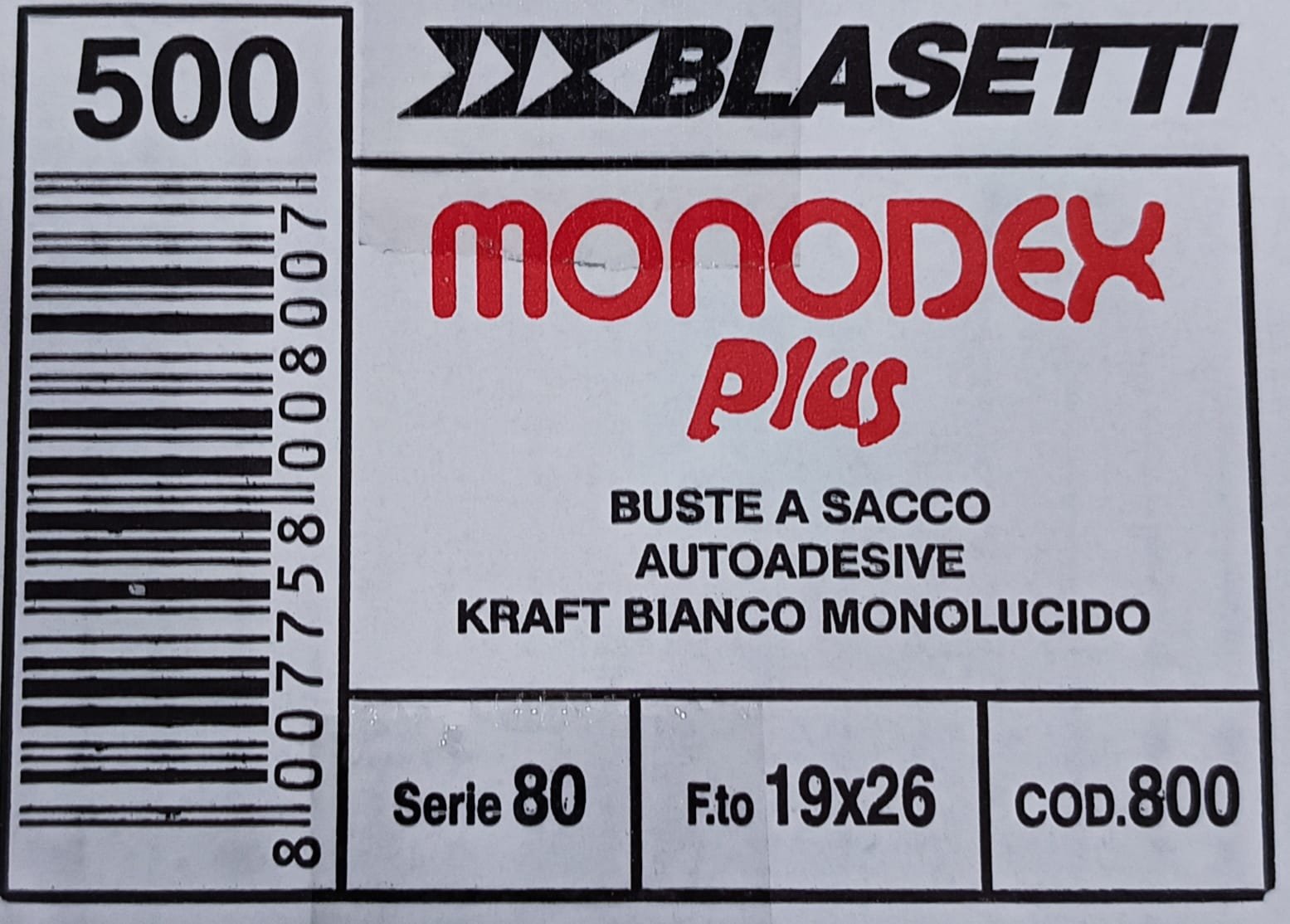 QUANTITÀ: 500 BUSTE