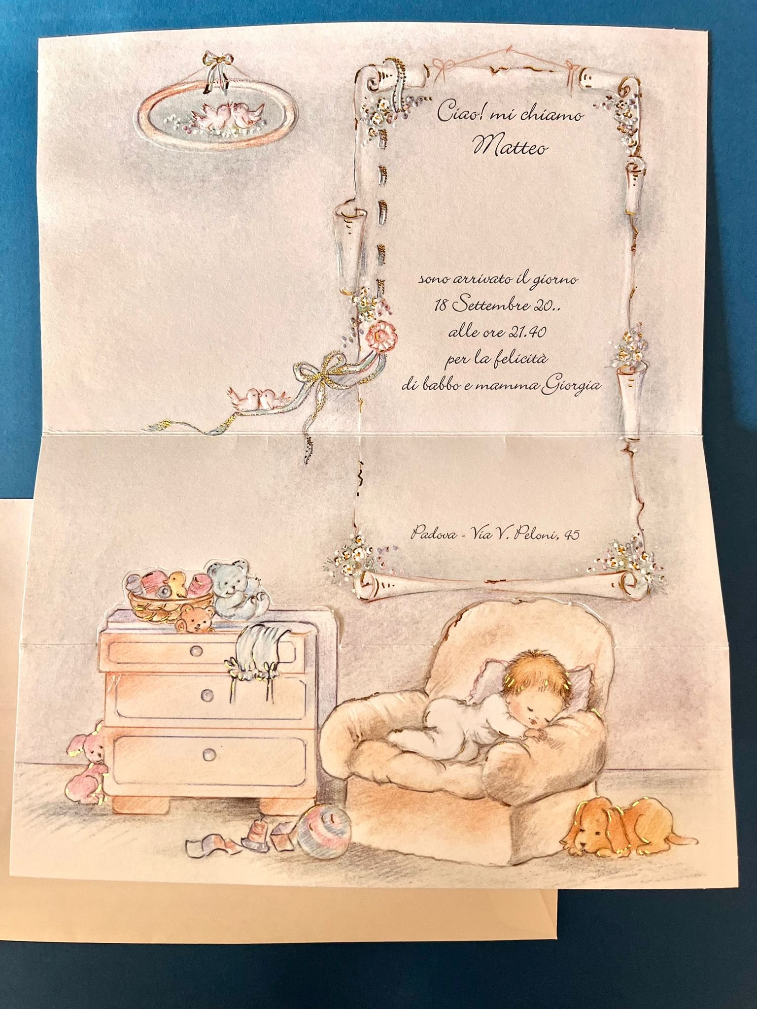 PARTECIPAZIONE NASCITA FUMETTO N77734 COMPLETA DI BUSTA