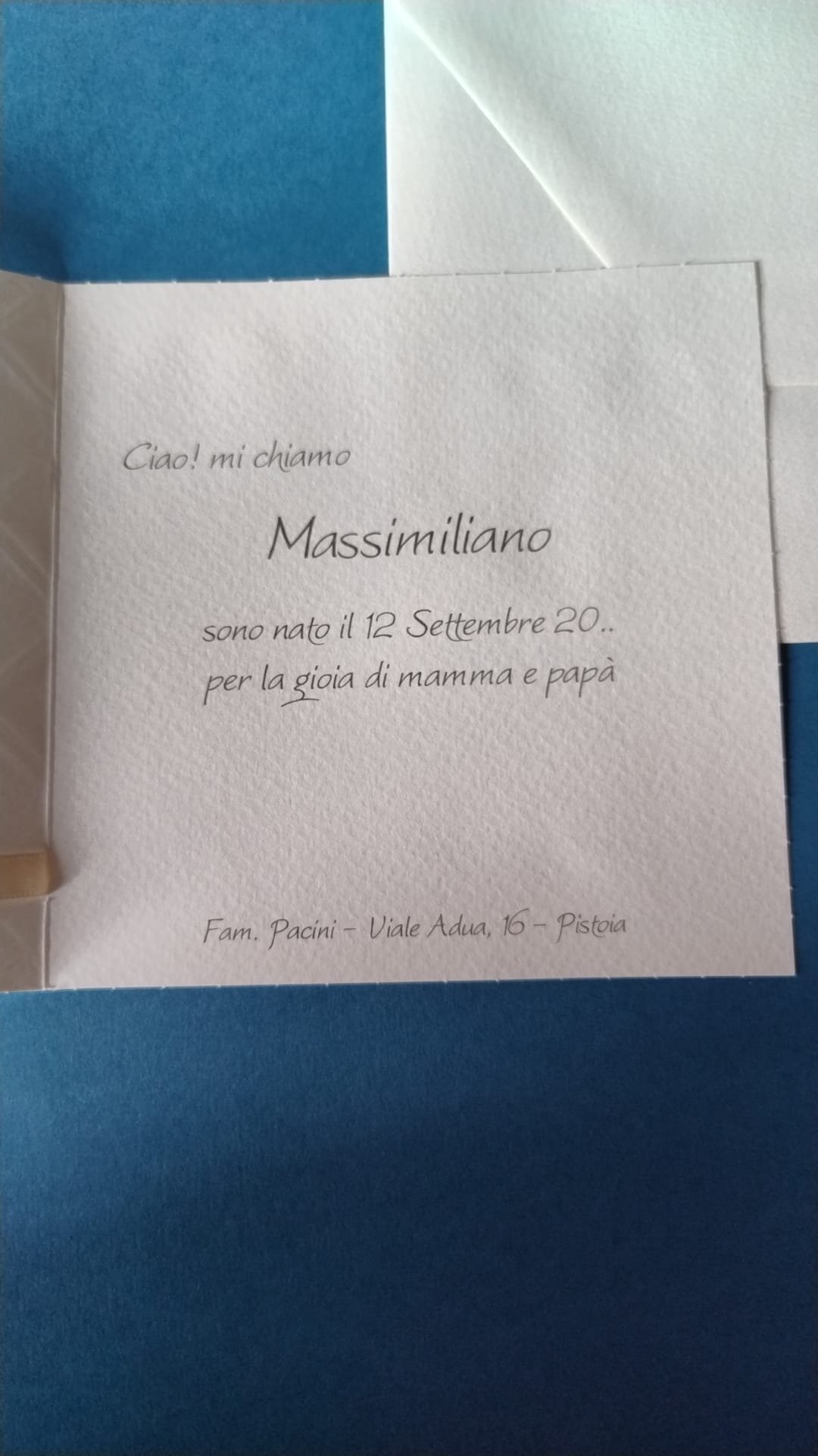 PARTECIPAZIONE NASCITA QUADRATA APERTURA A LIBRO CON BUSTA