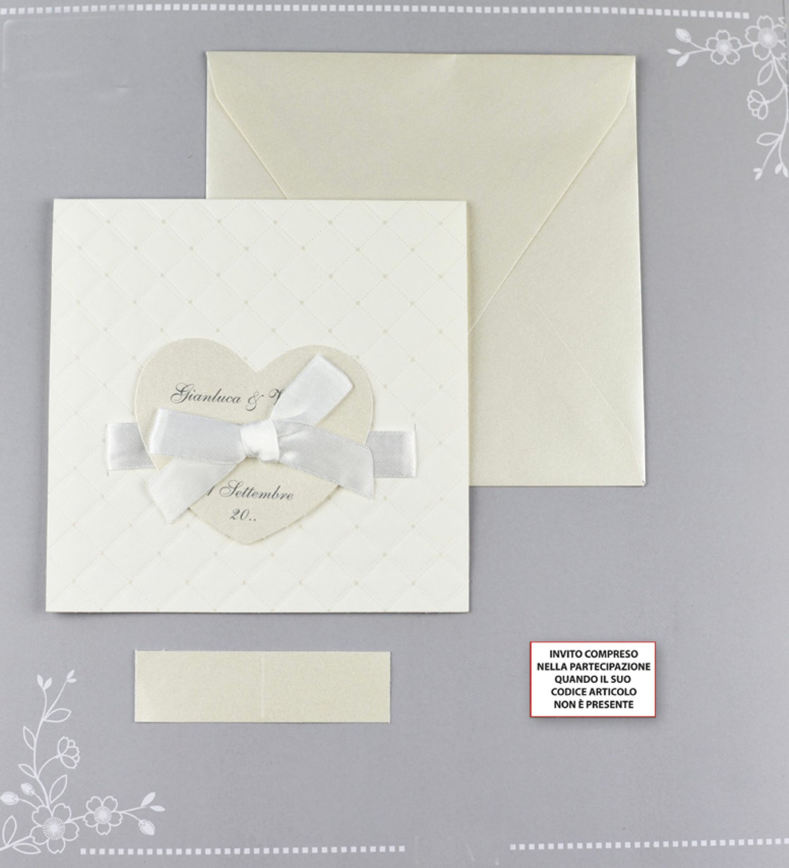 COMPRENSIVA DI INVITO E BUSTA F.TO MM 150X150