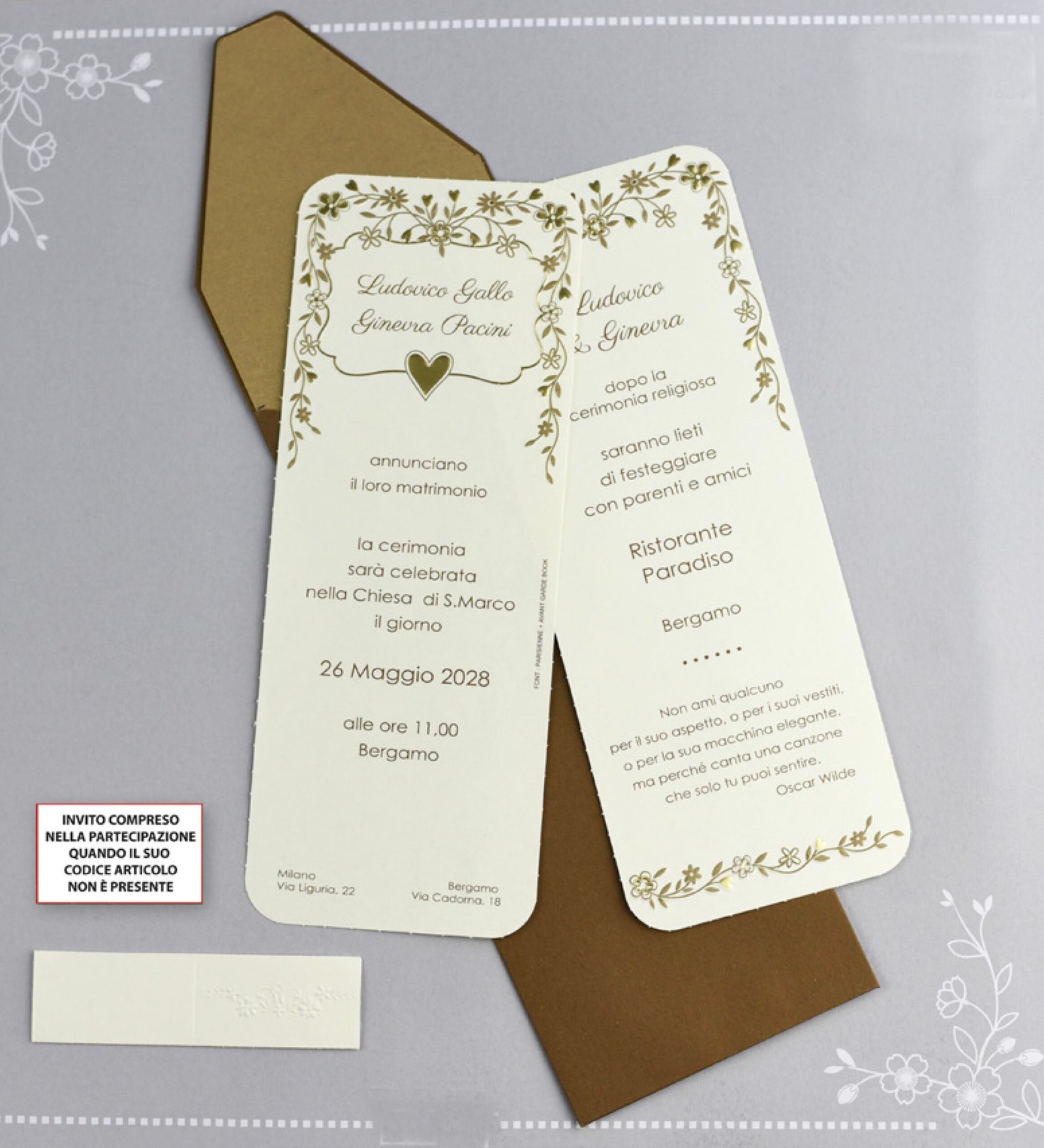PARTECIPAZIONE NOZZE COMPOSTA INVITO E BUSTA COME DA FOTO. F.TO 21 X 8.